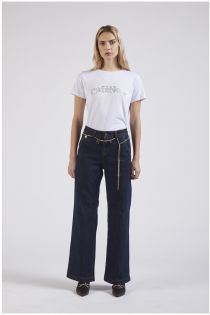 Jeans dalla vestibilità palazzo con cintura gioiello realizzata in tela denim comfort.