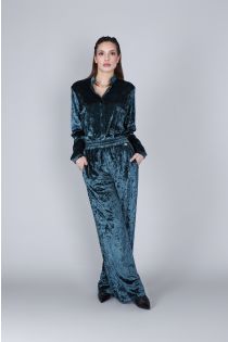 Pantaloni palazzo con cinturino elasticato in vita realizzato in morbida ciniglia martellata. vestibilità regular perfetto per look casual chic e confortevoli. la modella è alta 172 cm e indossa la taglia s.