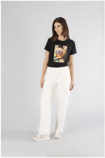 Pantaloni cargo con applicazione di strass sulle tasche a toppa. realizzati in felpa. capo perfetto che chi ama essere sportiva ma senza rinunciare alla femminilità.