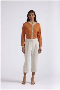 Pantaloni cropped con maxy risvolti al fondo. realizzati in un fresco tessuto misto lino.