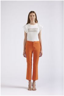Pantaloni dalla vestibilità cropped flare in tessuto superstretch dall'effetto fiammato. chiusura con cerniera e bottone.
