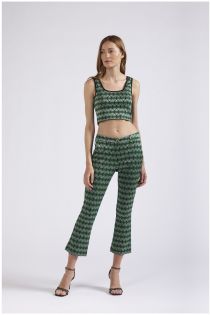pantaloni cropped flare tessuto jacquard rombo multiverde