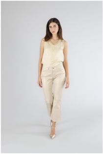 Pantaloni modello cropped in gabardina laminata. offrono una vestibilità comoda e sono ideali per creare outfit eleganti e versatili. questi pantaloni combinano stile e comfort per ogni occasione.