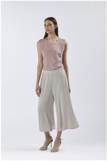Pantaloni culotte con vita elasticata realizzati in tessuto stretch. comodi e pratici per un look casual impeccabile.