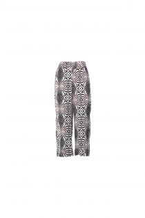 Raffinati pantaloni modello culotte in raso di viscosa fantasia decorati da delle bordature di raso a contrasto