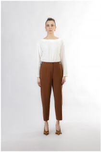 Pantaloni modello a gamba dritta con vita dietro elasticata realizzato in tessuto bistretch. capo must-have per la stagione autunno inverno.
