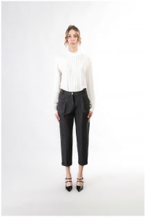 Pantaloni modello a gamba dritta con pinces aperte e risvolto al fondo. capo comodo con vita elasticata sul retro e realizzato in tessuto elasticizzato. pratici e confortevoli con l'intento di vestire al meglio tutte le fisicità per stare bene ed essere a proprio agio ogni volta che vengono indossati.