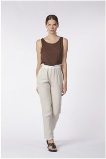 Pantaloni in lino e viscosa dalla vita elastica. capo fresco ed elegante