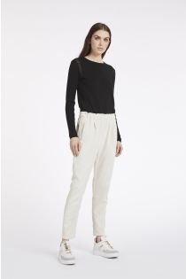 Gusto sporty chic per questo pantalone realizzato in un confortevole velluto rocciatore che vede l'alternanza di costa larga e costa stretta.