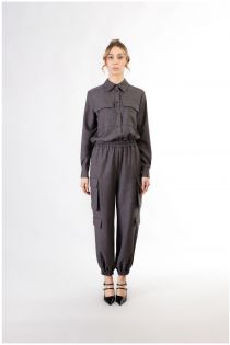 pantaloni modello cargo con polsino e vita elasticata antracite
