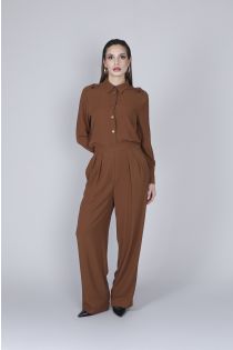 Pantaloni palazzo in tessuto fluido con pinces davanti e vita elasticata sul retro. stile casual fitting regular per un comfort impeccabile. perfetto per ogni occasione. la modella è alta 172 cm e indossa la taglia s.