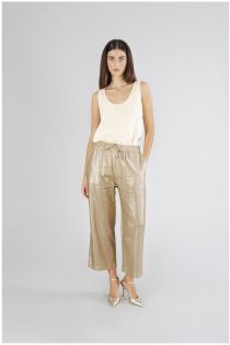 pantaloni palazzo in lino placcato oro