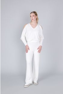pantaloni palazzo in maglia off white