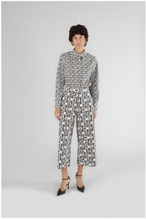Pantaloni modello palazzo realizzati in popeline di cotone stampato. perfetti da abbinare alla camicia in coordinato promettono di catturare l’attenzione in ogni occasione regalando eleganza e originalità.