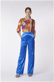 pantaloni palazzo in raso di viscosa zaffiro