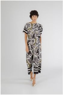 Pantaloni modello palazzo in satin con stampa floreale esclusiva perfetti per una donna che ama distinguersi. da abbinare alla blusa in coordinato. pratici e sofisticati sono ideali per tutte le occasioni quotidiane.