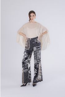 Pantaloni palazzo in satin di viscosa stampato con eleganti spacchi laterali che slanciano la silhouette. leggeri fluidi e raffinati sono ideali per look estivi chic e outfit serali di tendenza. la modella è alta 171 cm e indossa la taglia s. vestibilità: regular.