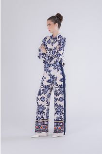 Pantaloni palazzo in marocain di viscosa stampato dalla linea fluida ed elegante. la banda laterale in gros grain sui fianchi slancia la figura e aggiunge un dettaglio grafico raffinato perfetti per look chic e contemporanei. la modella è alta 175 cm e indossa la taglia s. vestibilità: regular.