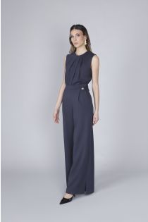 Pantaloni palazzo in tessuto elasticizzato con spacco laterale e vita elasticata dietro per un fitting regolare e confortevole. la modella è alta 173 cm e indossa la taglia s.