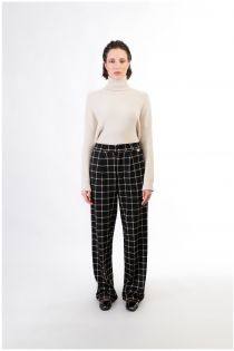 Pantaloni dalla vestibilità wide con pieghe davanti e vita posteriore elasticata. realizzati in tessuto jacquard a quadri. dallo stile sofistificato da abbinare alla giacca in coordinato.