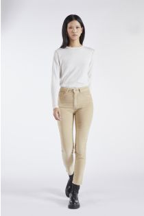 Pantaloni tinto capo dalla vestibilità skinny vita alta realizzati in un confortevole velluto maltagliato con prezioso bottone verniciato