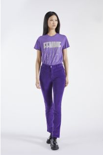 Pantaloni vestibilità slim a vita alta realizzati in un comfortevole velluto maltagliato prezioso bottone verniciato