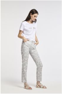 Pantaloni slim stampati realizzati in tessuto di cotone elasticizzato