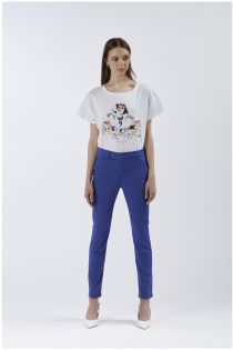 Pantaloni dalla vestibilità slim. tasche america. capo in rasatello di cotone tinto capo. chiusura con cerniera e bottone.