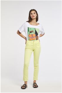 pantaloni slim tinto capo realizzati in tessuto di cotone elasticizzato lime