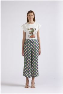 Pantaloni tipo culotte dalla vestibilità comoda. realizzati in saglia di viscosa stampata. chiusura con zip laterale.