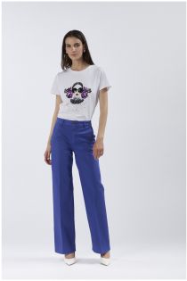 Pantaloni dalla vestibilità wide leg. tasche america. capo in rasatello di cotone tinto capo. chiusura con cerniera e bottone.