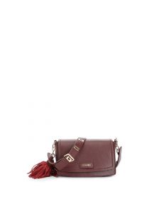pattina con charm grande fiore in tessuto, manico con fibbia regolare bordeaux
