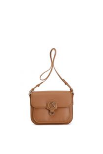 Borsa a spalla con pattina in materiale effetto martellato. logo applicato effetto cuoio con cuciture a mano e bordature ai lati. taschino frontale. chiusura con calamita.