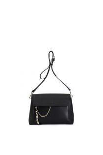 Borsa a spalla con pattina in saffiano liscio. tiralampo con letterine in metallo e catena removibile. chiusura con calamita. borsa dotata di doppio scomparto.