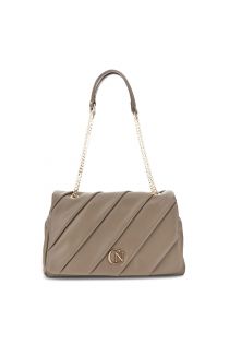 Borsa a spalla in similpelle con pattina e plissettatura tracolla in catena scorrevole con spallacci imbottiti. logo cafènoir in metallo per un tocco iconico ed elegante.