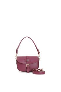 pattina in pelle con tracolla corta, passante con rivetto smaltato e fibbia viola