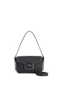 Borsa a spalla in saffiano con pattina impreziosita da accessorio smaltato e infilatura metallizzata. dotata di tracolla regolabile e removibile per massima versatilità.