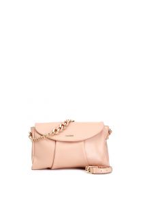 Borsa a spalla con pattina morbida e piega centrale. logo in metallo. doppia tracolla sia in catena bicolore sia nello stesso materiale della borsa. chiusura con calamita.