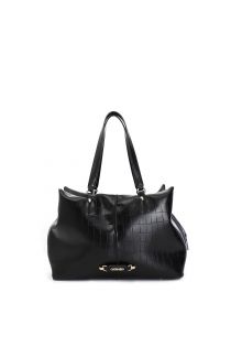 pattina shopping con bordature a contrasto, tag con logo cn in metallo nero
