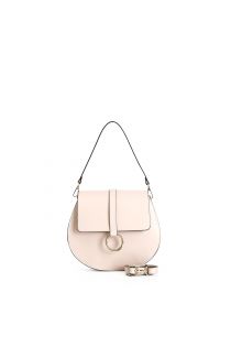 Borsa a spalla tonda in pelle liscia con accessorio. borsa da portare a mano o con tracolla. chiusura con cerniera.