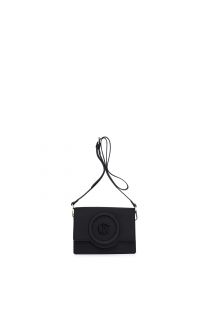 Piccola borsa in materiale effetto opaco pattina con logo ad alta frequenza e tracolla optional.