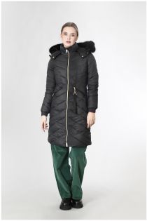 Piumino dalla linea avvitata e dal cappuccio rifinito con un bordo in pelliccia sintetica staccabile.
