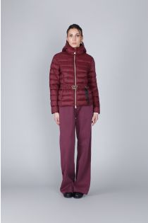piumino corto con cintura logata burgundy