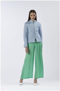 Piumino con trapuntatura a rombi realizzato in un nylon impalpabile dalla finitura opaca. chiusura con zip. colletto in piedi con bottoni automatici logati. il capo è a maniche lunghe e sono presenti anche le zip che hanno funzione sia decorativa sia funzionale.