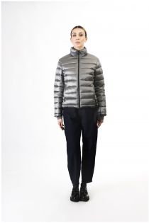 Piumino corto avvitato che delinea il punto vita. dalla linea essenziale ma sempre attuale. chiusura con zip doppio cursore tasche con zip. realizzato in un nylon leggero ed impalpabile dall'aspetto superlucido. versatile e pratico capo immancabile nel guardaroba della nuova stagione autunno inverno.