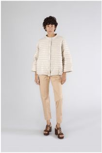 Piumino primaverile a maniche lunghe dalla linea svasata. il capo è reversibile e da entrambi i lati è tinta unita. versatile e pratico capo immancabile del vostro guardaroba .