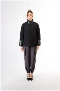 Piumino corto modello cappa bimateriale. colletto e fondo manica in tessuto ultralight. da indossare per andare al lavoro quando il maltempo si fa sentire per una passeggiata all’aria aperta con la famiglia o le amiche.