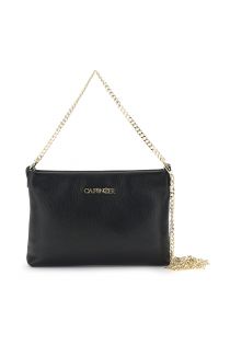 pochette in pelle dollaro, tracolla e manico con catena e moschettoni nero
