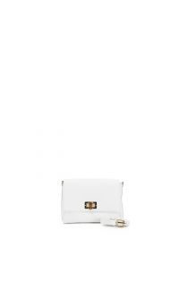 pochette in pelle martellata con chiusura metallo e bamboo bianco