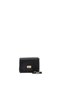 pochette in pelle martellata con chiusura metallo e bamboo nero